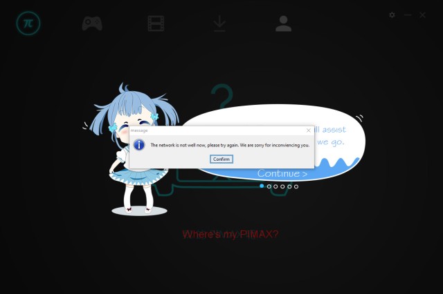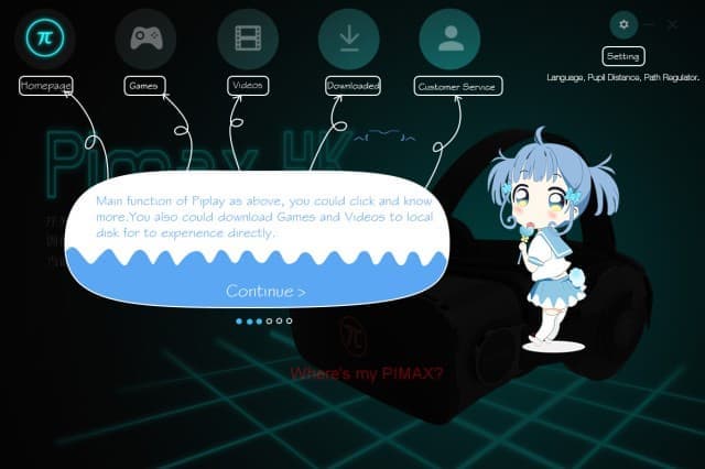 Если гарнитура отключена или подключена неправильно, то PiPlay выводит сообщение об ошибке и задаёт вопрос: «Где шлем?» В этом же окне можно выбрать режим работы гарнитуры — Pimax Mode или Video Mode.