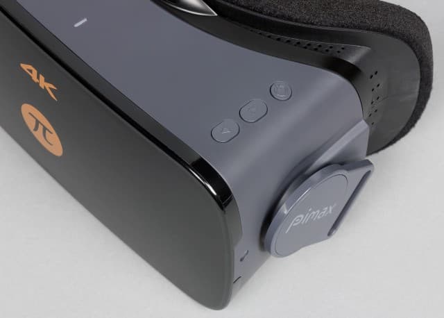 На верхней плоскости гарнитуры, ближе к дальнему левому краю относительно пользователя, находятся три кнопки: первые две для регулировки громкости в наушниках отдельно от вашего ПК, а третья кнопка позволяет включить или выключить Pimax 4K.