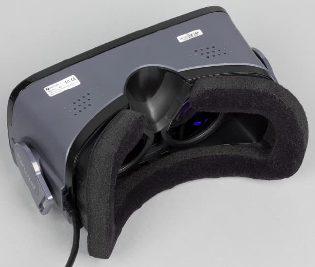 Края внутренней части амбушюра экрана гарнитуры VR обшиты необработанным жёстким поролоном, который плотно прилегает к лицу пользователя и хорошо собирает пыль, волосы и всякого рода грязь.