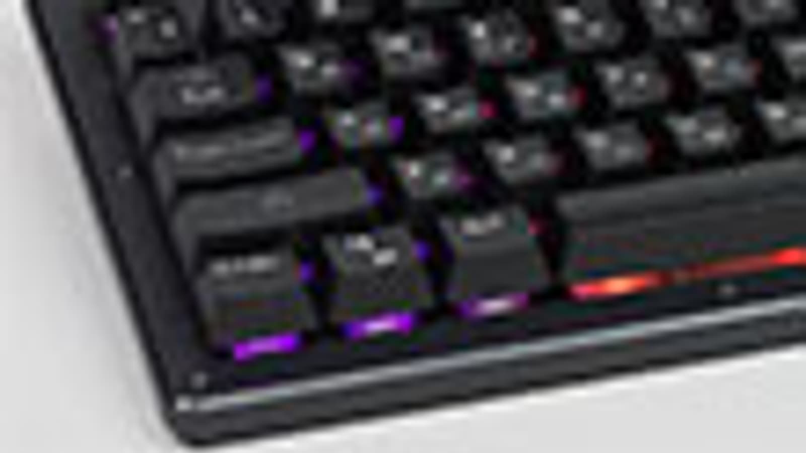 У механизма клавиш, выполненного из прозрачного пластика, есть еще одна важная задача — он выступает в роли рассеивателя для подсветки. В клавиатуре реализована честная RGB-подсветка, снабжённая достаточно приятными режимами, изменять которые в широких пределах можно без участия софта. Лучше всего работу подсветки отражает интерактивный блок на промо-странице клавиатуры — там всё выглядит максимально близко к действительности. Анимация подсветки плавная, цветовые сочетания приятные, а переходы между ними — мягкие. Характеристика подсветки смотрится гораздо дороже самого устройства, однако подводный камень всё же есть — контуры клавиш светятся значительно ярче букв, что может отвлечь неподготовленного пользователя. Пользователей, не очень уверенно ориентирующихся в клавишах, данная особенность может отвлекать. В остальном подсветке ставится оценка отлично.