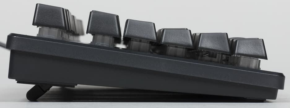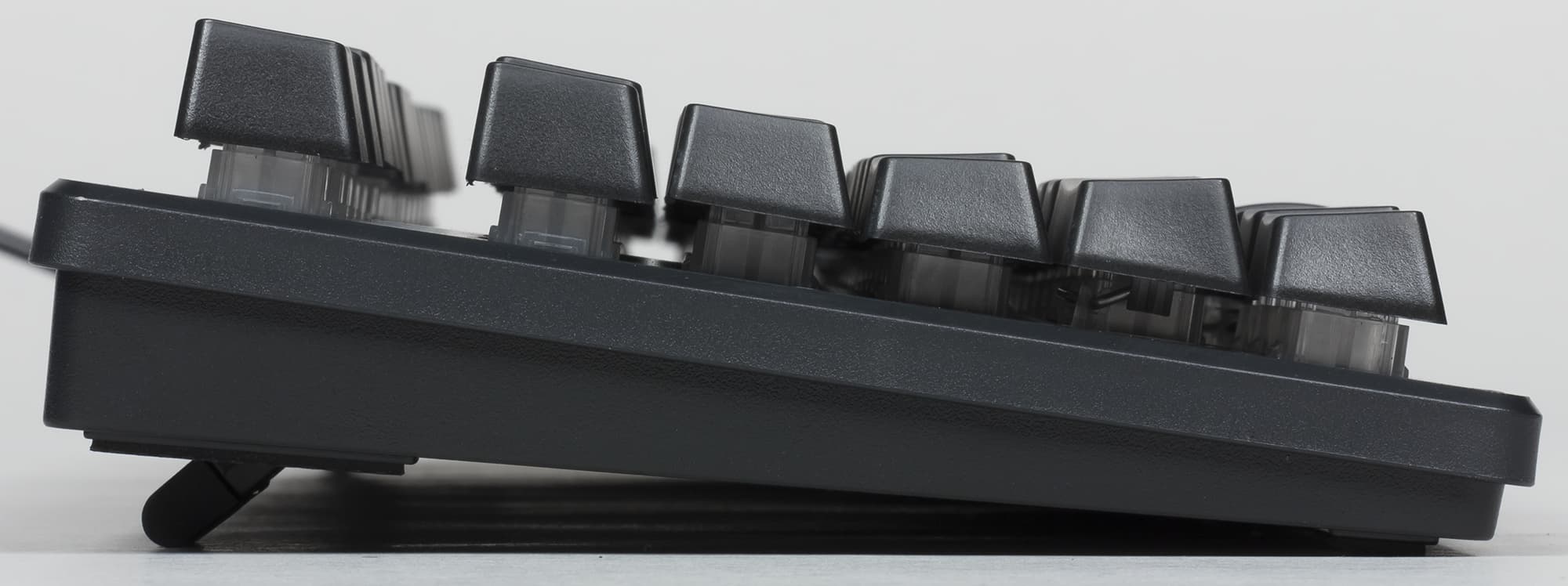 Клавиши обладают внушительной высотой и слегка вогнутым профилем. Их подъём сопоставим с клавишами на механических клавиатурах, однако в данном случае переключатели всё же мембранные. Это является одним из основных достоинств устройства. Производителю удалось добиться от мембранных переключателей работы, тактильно схожей с механикой.
