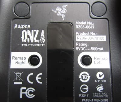 Рисунок передней торцевой части Razor Onza сильно отличается от традиционного из-за наличия двух дополнительный бамперов RMFB и LMFB. Они расположены выше стардартных RB и LB, так, чтобы их можно было нажимать одновременно одним пальцем. В некоторых играх это дает серьезное преимущество.