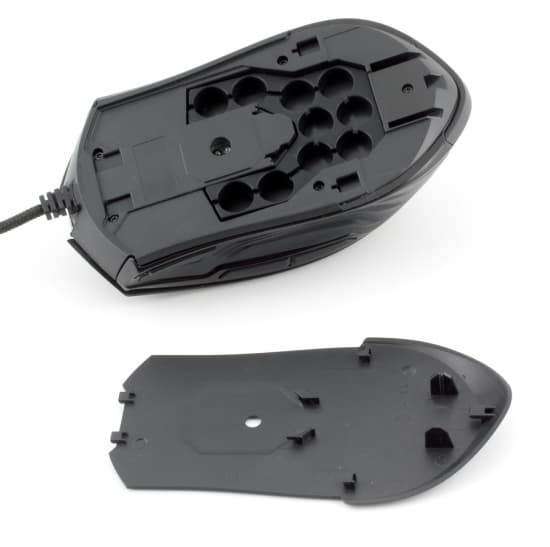 Была испробована и сменная панель с керамическими ножками. Стоит признать, что даже стандартная тефлоновая панель ездит по столу весьма резво. А уж когда обычная мышь была установлена на меньших по площади керамических опорах, то и вовсе перевоплотилась в летучую. И дело не только в ножках, но и в легкости самой мыши, которая сочетается с весьма крупным корпусом. Массу можно варьировать в широком диапазоне при помощи грузиков общей массой почти 40 г; при установке полного набора даже алюминиевые «корсары» кажутся легче.