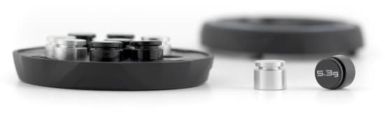 В стильной шайбе закреплено 10 грузиков: шесть массой 5,3 г и четыре по 1,8 г. Для удобства прилагается металлический пинцет.