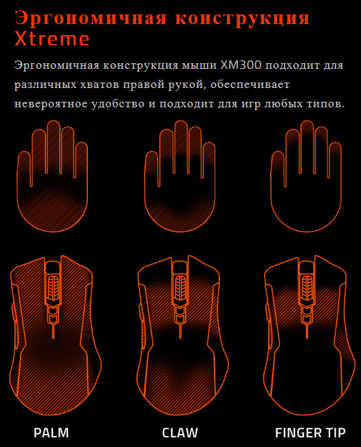 В то время как производители сегментируют игровые мыши, предоставляя как легкие компактные модели типа Cougar 600M, так и полные противоположности с дополнительным увеличением веса, как у Redragon FOXBAT, в Gigabyte решили предложить универсальную модель, подходящую большинству пользователей, что называется, из коробки, причем как по размерам, так и по типу хватов — именно это означает пункт «эргономичная конструкция Xtreme» в спецификациях.