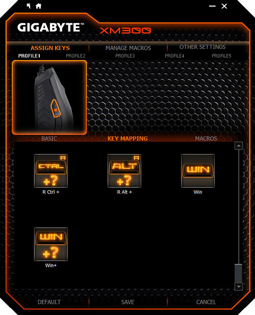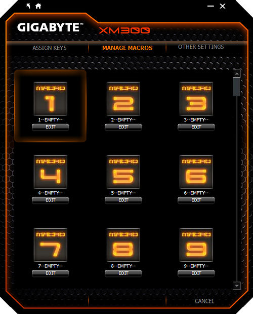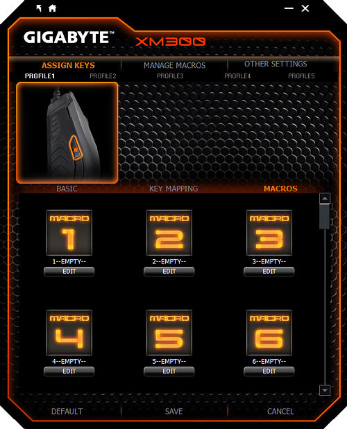 Почему-то отсутствующая в спецификациях внутренняя память Gigabyte XM300 не требует дополнительных драйверов, для настройки мыши достаточно установки штатной программы Xtreme Macro Engine.