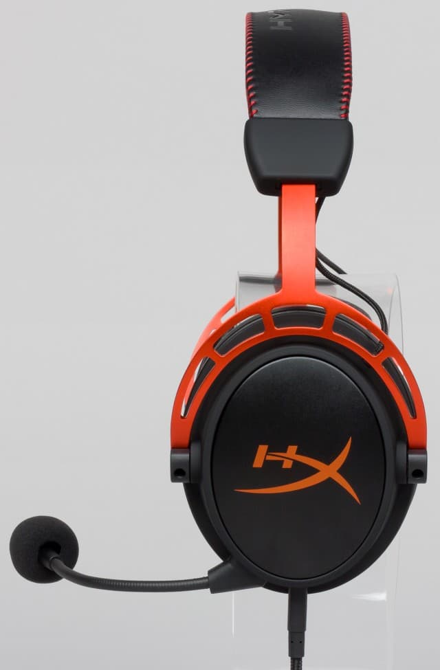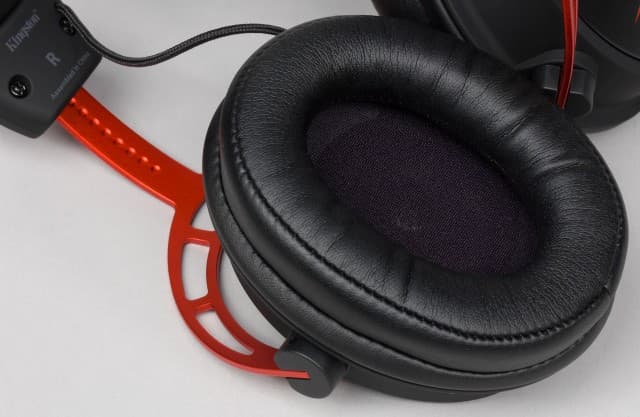 Внутри оголовье выполнено из алюминия, а снаружи оно обшито синтетической кожей, мягкой и прочной. На внешней стороне выдавлен логотип HyperX. Прилегающая к голове часть сделана из специальной пены с эффектом памяти. Оголовье регулируется под размер головы слушателя, причём диапазон такой, что, по мнению производителя, даже обладателям самых крупных голов будет комфортно. В целом конструкция оголовья уже проверена временем и зарекомендовала себя как прочная и надёжная.