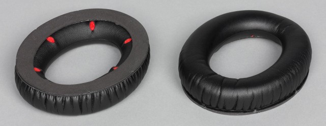 Несмотря на то, что в комплекте нет отдельных сменных амбушюр, снять основные достаточно легко, это дает надежду на то, что в грядущих сериях появится и опция с заменой. Дело в том, что амбушюры из искусственной кожи — это, разумеется, неплохо с точки зрения долговечности, однако у некоторых пользователей в них потеют уши. Такие люди обычно предпочитают тканевые амбушюры.