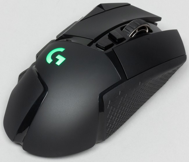На спинке мыши есть зона подсветки в виде буквы G. Ещё одной зоной подсветки является индикатор уровня заряда аккумулятора из трёх сегментов, расположенный на верхней грани левого бока манипулятора. С помощью фирменного приложения G Hub можно настроить режим работы подсветки, её цвет и синхронизировать с другими совместимыми устройствами.
