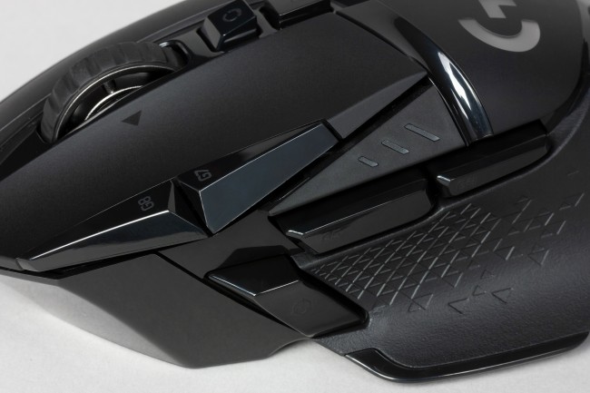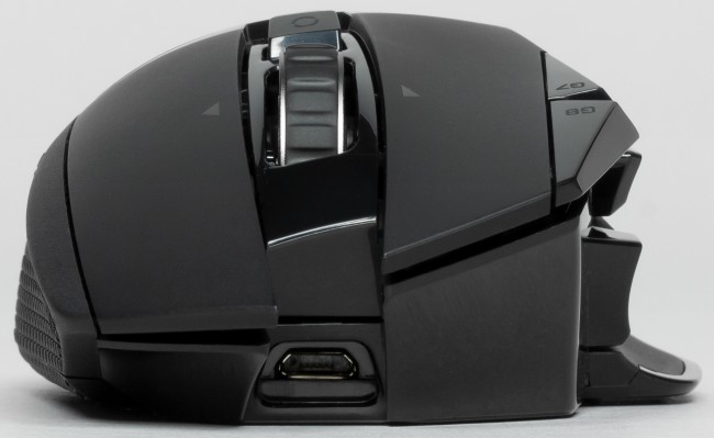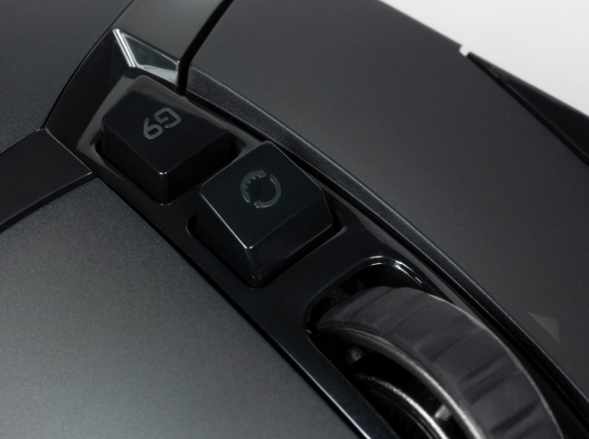 При смещении указательного пальца влево его подушка тактильно ощущает острые грани кнопок изменения разрешения оптического сенсора (G7 и G8). Две кнопки размещены по внешней кромке «Левой» кнопки мыши и случайно их не нажать.