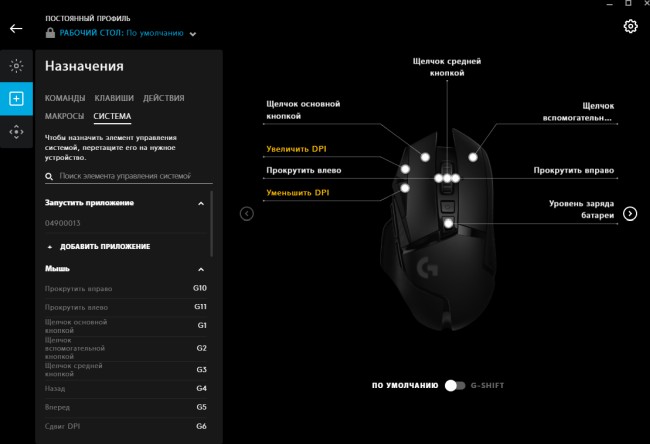 Конечно, на все кнопки, за исключением управляющей режимом работы колеса прокрутки, пользователь может назначить другие действия или вызов макросов. Всего для программирования доступно 11 кнопок. Переназначение действий осуществляется в приложении G Hub.