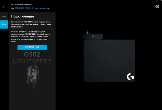 Нельзя не отметить возможность синхронизации работы подсветок мыши и коврика. Кстати, в процессе экспериментов с подсветкой выяснилось, что нажатие на мышке кнопки G9, включающей индикатор уровня заряда аккумулятора, приводит к отключению подсветки. Вызов приложения G Hub и смена выбранного режима подсветки возвращает её к жизни.