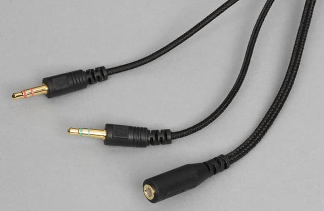 Интерфейсный кабель защищает текстильная оплётка, а входящий в комплект У-образный удлинитель позволяет отойти в гарнитуре от ПК на три метра.
