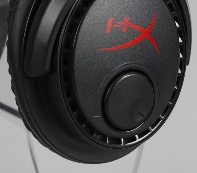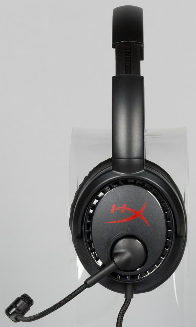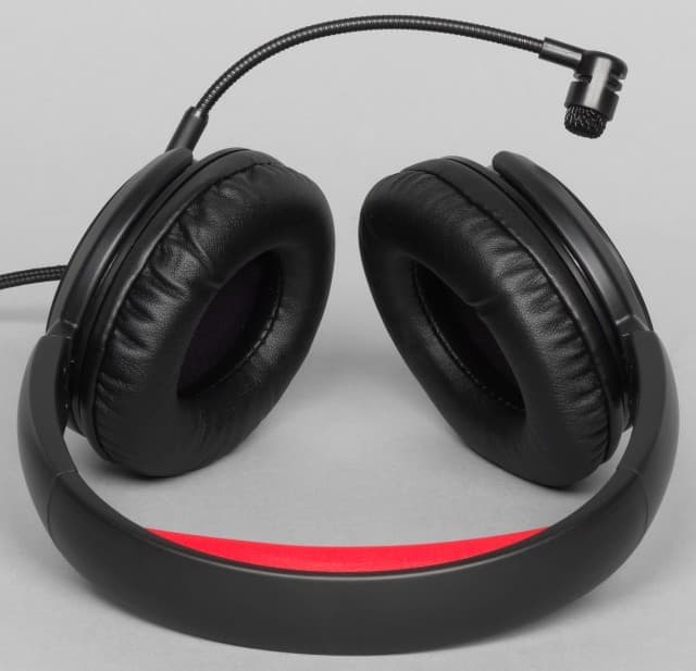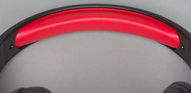 Внутренняя часть оголовья сделана из узкой полоски синтетической кожи красного цвета. Внутри мягкий наполнитель, который обеспечивает комфортное прилегание к голове слушателя. На обеих чашках гарнитуры размещён красный логотип HyperX, что гармонично завершает общую картину дизайна. Вообще конструкция оголовья такова, что зачастую наушники могут сползать или сильно давить на голову слушателя. Однако в данном случае подобных проблем не возникает, благодаря малой массе гарнитуры.