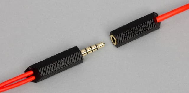 Места крепления на чашках имеют жёсткие муфты, практически не защищающие от перегиба. Заканчивается кабель стандартным 3,5 мм джеком с четырьмя контактам. Здесь используется конфигурация по стандарту CTIA (LRGM), что подходит для игровых консолей и многих смартфонов, но потребуется удлинитель.