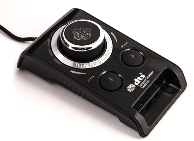 Перейдем к звуковой карте. Модель Tt eSports Bahamut не зря располагается на официальном сайте в разделе «Аксессуары» — именно так ее и стоит воспринимать. Виртуальное шестиканальное аудио на слух едва ли можно отличить от обычного стерео, обеспечиваемого интегрированным в материнскую плату чипом. А вот отрегулировать громкость в Windows с помощью удобного скроллера и заглушить звук/микрофон одним тычком кнопки может быть очень удобно, особенно если ваша гарнитура лишена таких контроллеров.