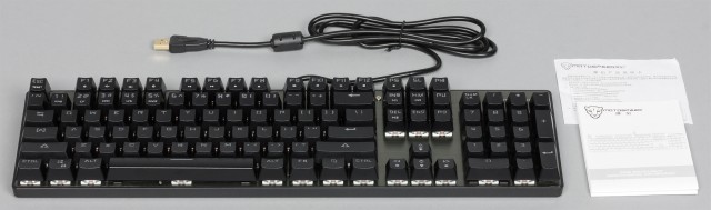 Клавиши сделаны из пластика и не имеют русской гравировки, поэтому если вы не умеете печатать вслепую, то придется озаботиться решением проблемы или поискать другую клавиатуру.