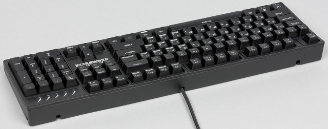 Клавиша Enter одноэтажная. На клавиатуре нет специальных дополнительных клавиш, но множество разнообразных действий можно совершить с использованием клавиши-модификатора Fn. В правом верхнем углу находятся стандартные индикаторы необычной формы: Num Lock, Caps Lock, Scroll Lock, Win Lock и Z-режима.