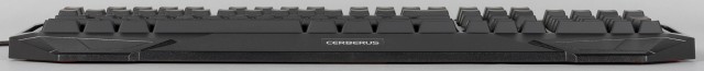 Клавиатура имеет необычную форму корпуса со скошенными углами, две декоративные ручки по бокам и рельефное покрытие в некоторых областях. В зоне для расположения запястий красуется название Cerberus, которое подсвечивается вместе со всеми клавишами клавиатуры. Над блоком стрелок размещена эмблема линейки Cerberus в виде трёхголового пса, также оснащённая подсветкой.