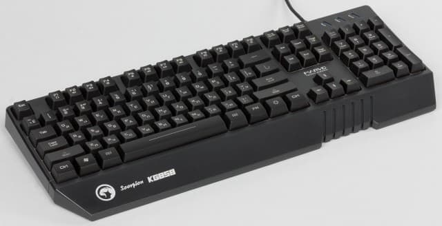 Клавиатура Marvo KG858 совсем недавно появилась в продаже и установленная для нее стоимость на уровне 3 000 рублей представляется сейчас несколько завышенной. Правда, в некоторых магазинах встречается цена почти в полтора раза ниже. Пожалуй, наиболее интересной особенностью устройства является полноцветная подсветка с несколькими режимами работы, что часто востребовано в игровом сегменте. Кроме того, отметим простую и крепкую конструкцию и крупные обозначения на клавишах. Устройство вполне может найти себе место на столе непритязательного игрока, который привык использовать тёмное время суток. Здесь как раз пригодятся и подсветка, и тихие мембранные клавиши.