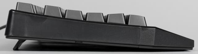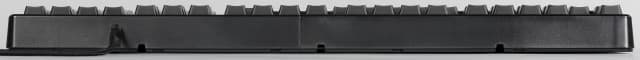 Тем более что задние ножки не имеют вставок и сделаны просто из пластика. Привычные откидные элементы позволяют поднять заднюю часть клавиатуры примерно на 9 мм. Но и они выполнены из пластика. Если ими не пользоваться, то разница в высоте клавиш первого и последнего рядов — менее 5 мм.