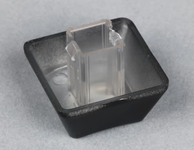 Клавиши здесь стандартной формы и изготовлены из прозрачного пластика, а потом покрашены серебрянкой и чёрной краской, так что собственно обозначения остаются прозрачными. Данная конструкция, вероятно, должна помогать обеспечить их подсветку через клавиши. Однако светодиоды здесь распределены по площади подложки, а не установлены под каждой клавишей, как бывает в более дорогих моделях. Так что непосредственно подсветка обозначений хорошо работает только при слабом внешнем освещении. А днём значки видны благодаря крупным контрастным обозначениям.