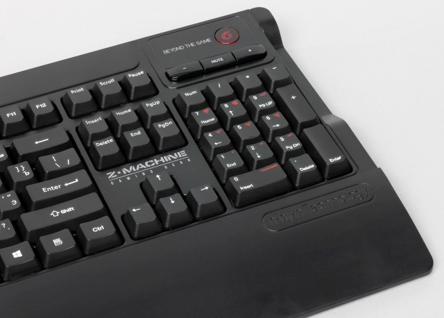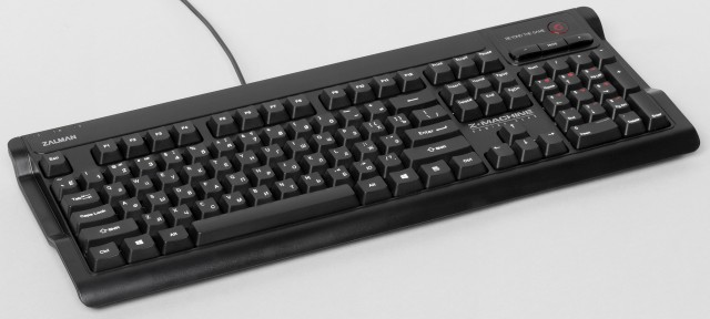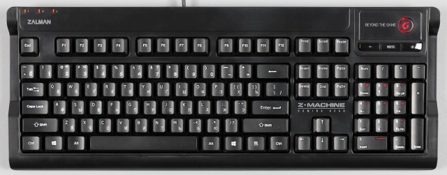 В левом верхнем углу клавиатуры размещен логотип Zalman. Надпись Z-machine, демонстрирующая отношение к игровой серии продуктов, находится над стрелками навигации. Специальные клавиши для регулировки громкости звука находятся в правом верхнем углу вместе с клавишей G.