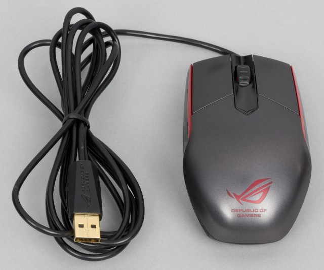 На части мыши, ближней к пользователю и накрываемой ладонью, размещён логотип Republic of Gamers, за которым расположен светодиод красного цвета, работающий по умолчанию в режиме дыхания. В фирменном ПО есть возможность выбрать один из двух режимов работы подсветки и её яркость, где второй режим — это статичный цвет.