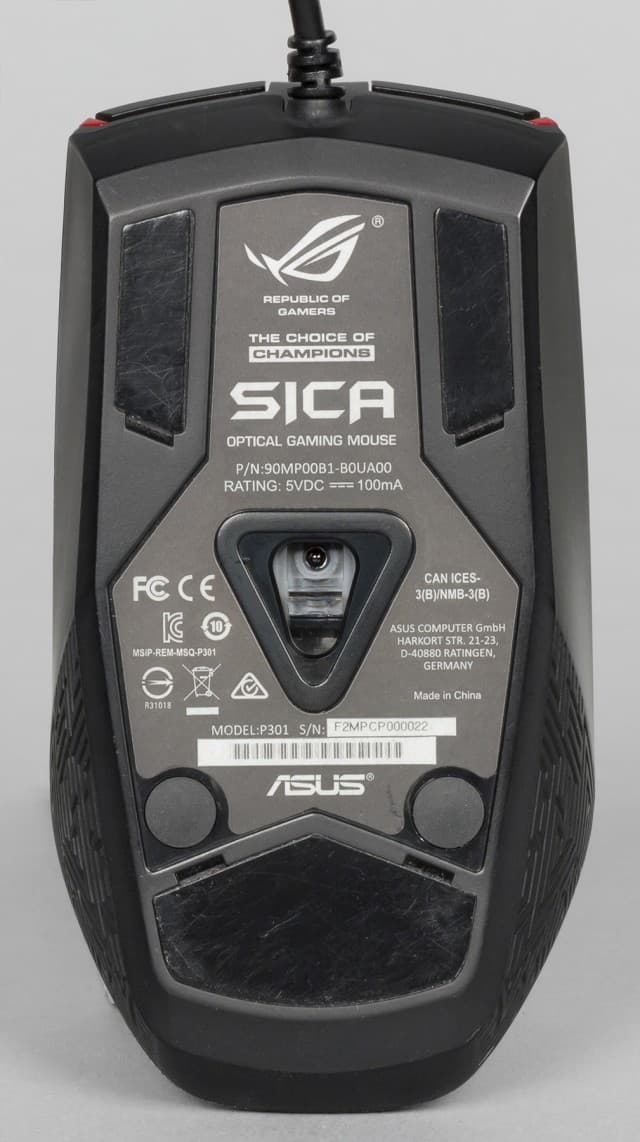 Мышь Asus ROG Sica наделена классическим дизайном и компактными размерами. Манипулятор полностью накрывается ладонью и удобен при хвате клешней, когда запястье лежит на коврике.