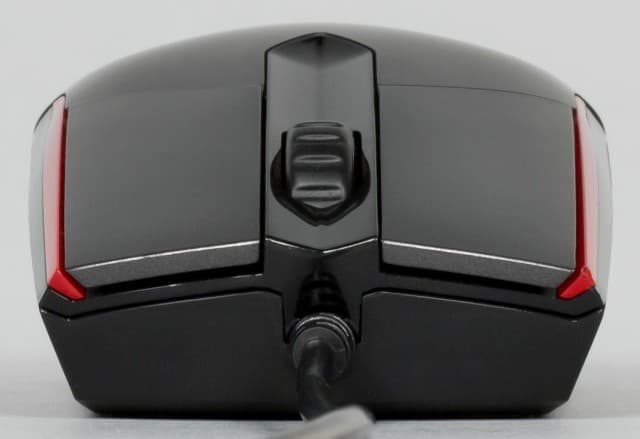 Производитель особо отмечает, что поверхности основных клавиш мыши отделены от корпуса манипулятора. Это позволяет сократить время нажатия на кнопку. Решение не уникальное. Выигрыш во времени может быть, но измеряется он долями микросекунд и на фоне главного замедлителя — пользователя — вряд ли будет заметным. Между клавишами манипулятора в стильном глянцевом углублении чёрного цвета расположено колесо прокрутки. Его удобно находить указательным пальцем, а рельефное прорезиненное покрытие обеспечивает прокрутку при приложении комфортного усилия, исключающего случайные сдвиги.