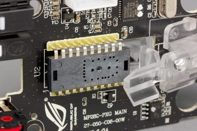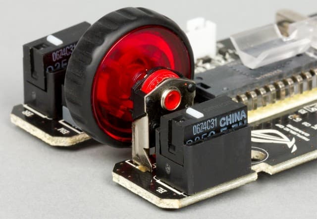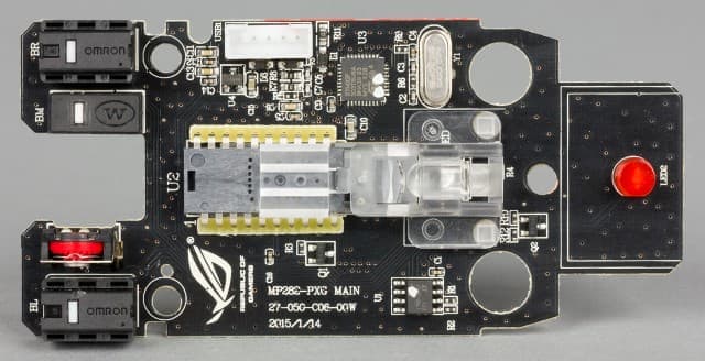 Что касается переключателей, то тут используются Omron D2FC-F-7N. В маркировке нет указателя на ресурс, но Asus обещает, что данная модель рассчитана на 20 млн нажатий. Как мы уже упоминали, переключатели не впаяны, а установлены в сокеты и легко извлекаются для замены.
