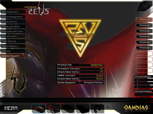 С учетом не совсем корректной работы протестированной ранее клавиатуры до обновления прошивки, перед началом тестирования решено было проверить на этот предмет и GAMDIAS Zeus. Вкладка «Update/Support» позволила обновить прошивку с версии 39 до версии 41.