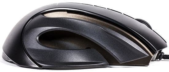 Мышь рассчитана под правую руку, поэтому боковые кнопки в количестве 4 штук располагаются под большим пальцем, обладателям средних и небольших ладоней ZIII-ZV доступны без дополнительных усилий, до ZII приходится тянуться.