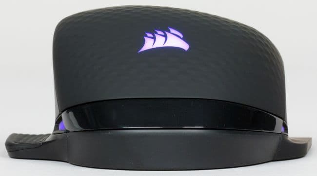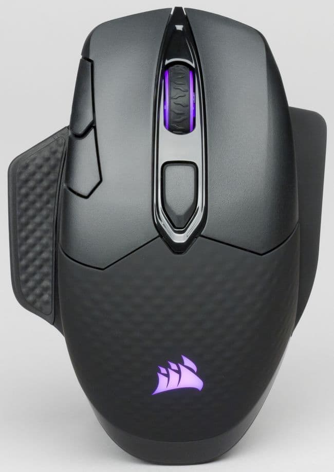 Диск колеса прокрутки выполнен из полупрозрачного пластика, хорошо пропускающего свет от RGB-подсветки. Сразу за колесом прокрутки расположена крупная кнопка для смены профиля. Настройки профилей теперь можно производить в новой утилите Interactive Corsair Utility Engine (iCUE), о которой мы поговорим ниже.