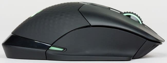 Там же, на левом боку Dark Core RGB SE, расположена кнопка «снайпера», которая переключает оптический сенсор на низкий уровень разрешения для точного прицеливания, пока пользователь удерживает кнопку нажатой.