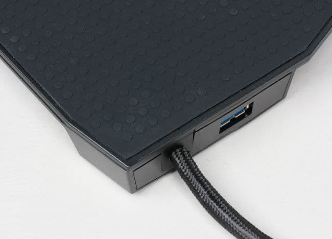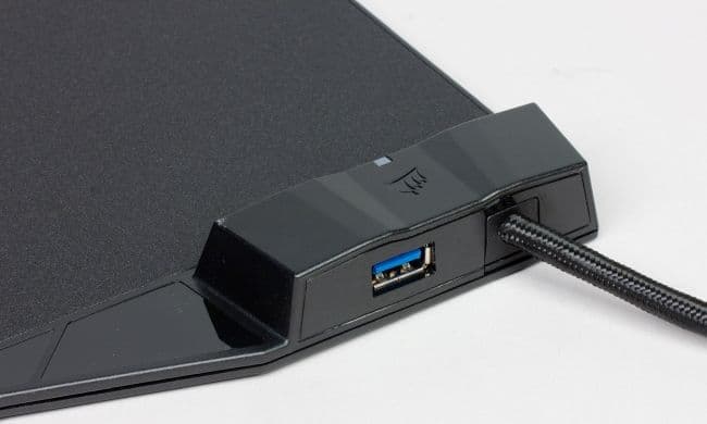 Игровой коврик оснащён сквозным портом USB 3.0 и зоной беспроводной зарядки устройств, совместимых со стандартом Qi.
