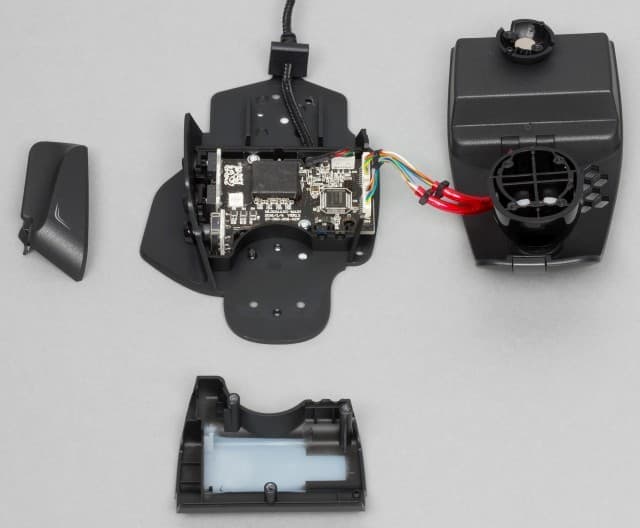 Новые переключатели Omron c ресурсом на 50 миллионов нажатий спрятаны в отдельной изолированной секции, до которой нельзя добраться, не ломая корпус мышки, поэтому нам остаётся поверить производителю на слово.