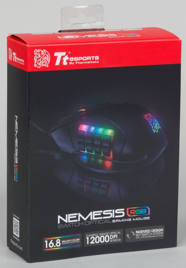 Игровая мышь TT eSports Nemesis Optical Switch RGB продаётся в компактной иллюстрированной коробке.