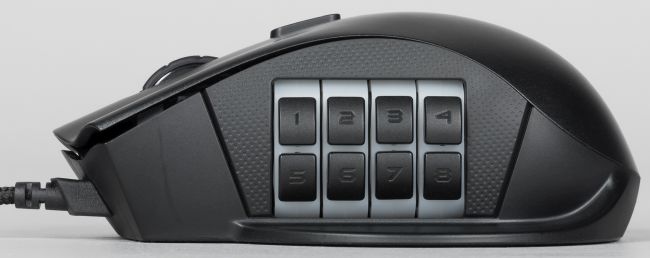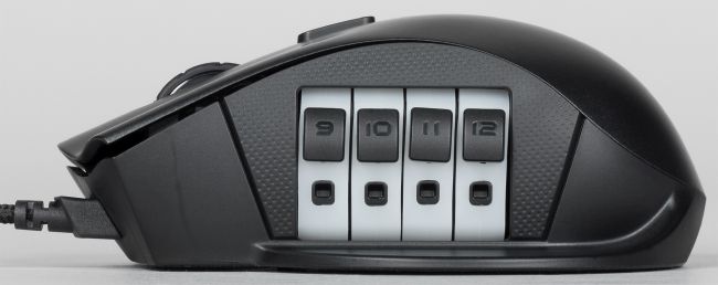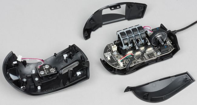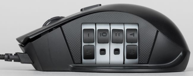 На правом боку мыши можно вывести от четырёх до восьми дополнительных кнопок, причём конфигурацию и количество кнопок пользователь может выбирать самостоятельно. Оригинальное и удобное инженерное решение.