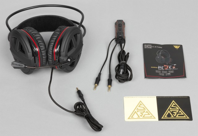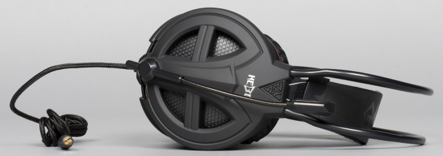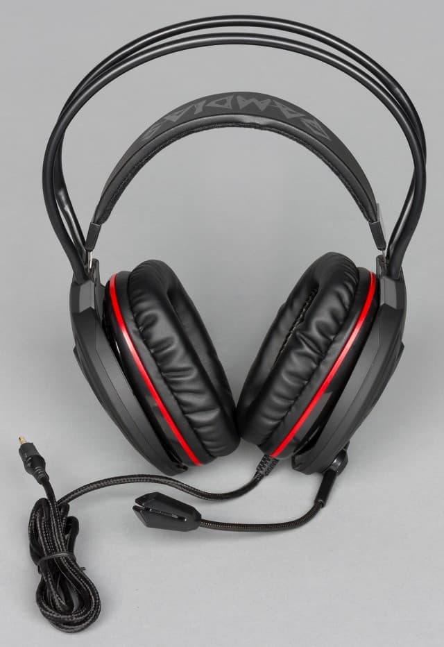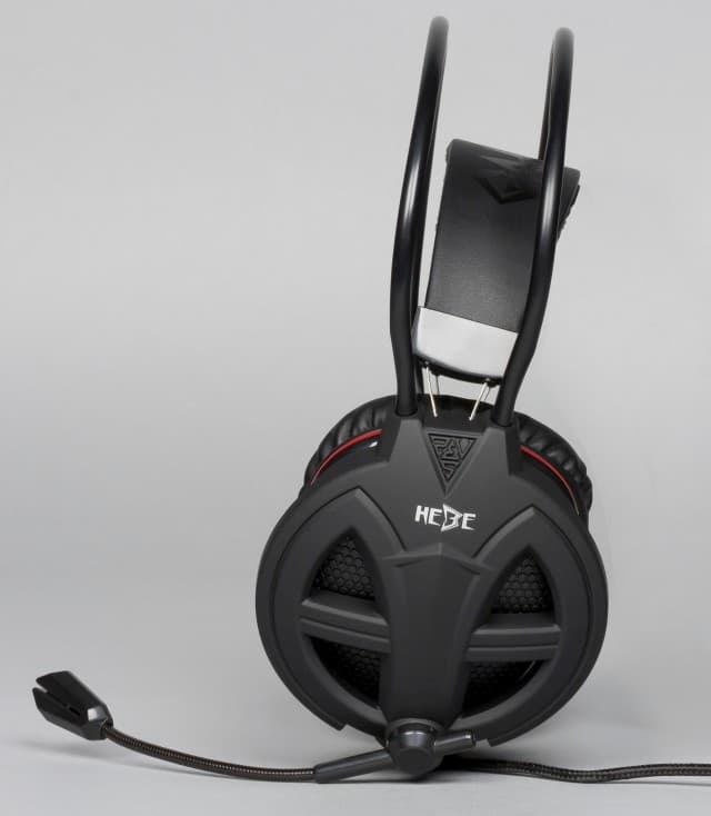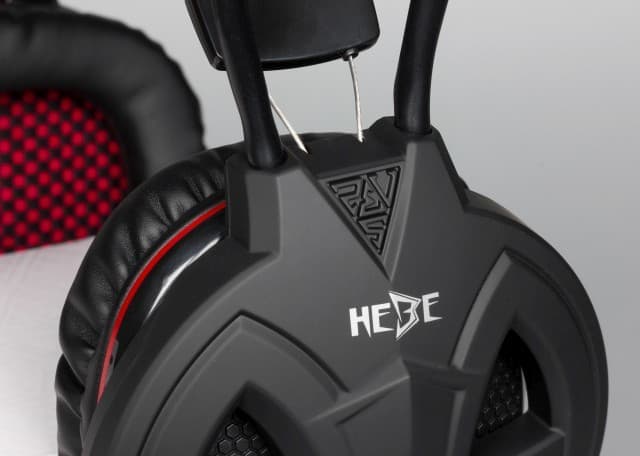 Чашки гарнитуры Hebe сделаны из прорезиненного пластика (софт-тач), который приятен на ощупь. Оголовье состоит из двух независимых частей. Внешняя часть оголовья сделана из гибких металлических стержней, которые покрыты пластиком и хорошо гнутся. Внутренняя часть оголовья представляет собой мягкий синтетический материал, натянутый на двух стальных поводках. Внутренняя часть, прилегающая к голове, — бархатистая, а внешняя гладкая, и по ее длине нанесена надпись Gamdias. Описанная конструкция оголовья позволяет плотно облегать голову слушателя и не создавать на нее давление сверху. Благодаря внешней части оголовья вся нагрузка перераспределяется на боковые стороны головы пользователя.