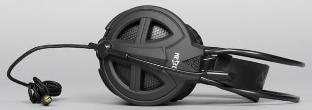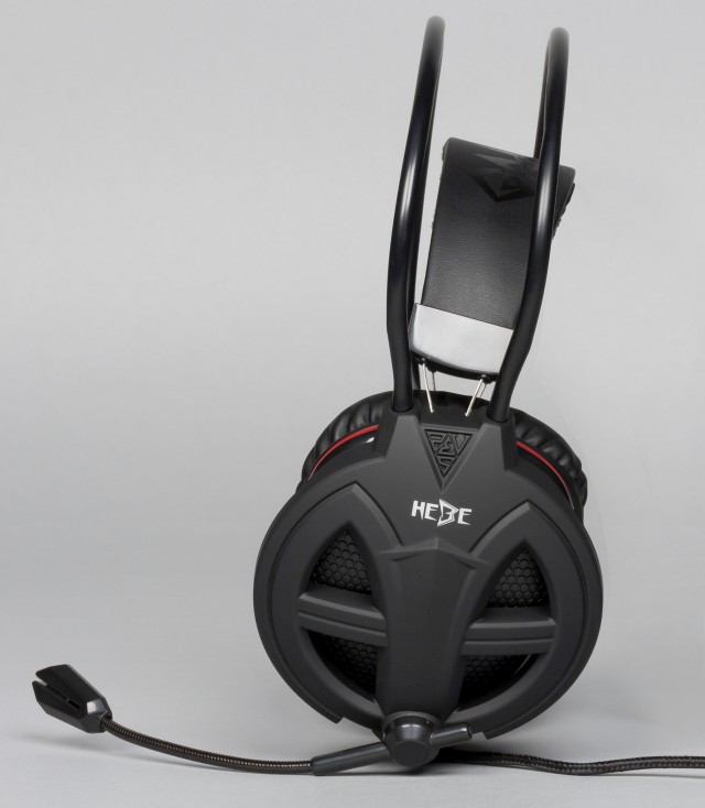Гарнитура Hebe V2 окрашена в черный цвет, а в местах прилегания амбушюров к чашкам имеется акцент красного цвета. Черная сетка наложена на материал красного цвета, закрывающий динамики. Амбушюры выполнены из искусственной кожи, под которой мягкий поролон. Амбушюры закрывают уши слушателя и очень хорошо изолируют его от внешних шумов. Даже на максимальной громкости в наушниках снаружи звучание лишь слегка слышимо, так что соседям по комнате прослушивание вами музыки в Hebe v2 точно не помешает.