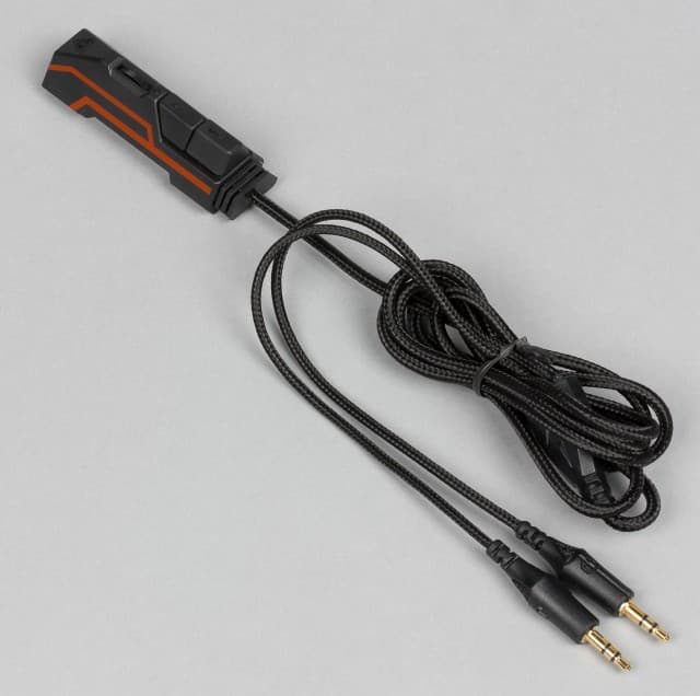Для подключения к ПК нужно использовать Y-образный удлинитель, т. к. он оснащен двумя разъемами minijack (3,5 мм) для раздельного подключения к линейному выходу и к микрофонному входу на звуковой карте. При этом пользователь получает дополнительную свободу за счет увеличения общей длины кабеля на 1,6 м, всего 2,8 м и пульт дистанционного управления. Кабели заключены в текстильную мягкую оплетку, которая мешает их растяжению и скручиванию. Пуль ДУ позволяет регулировать уровень громкости в наушниках, отключать звук и отключать микрофон.
