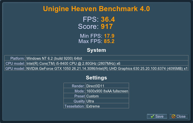 Также ноутбук тестировался при помощи бенчмарков Ungine Heaven Benchmark 4.0 и 3DMark Sky Diver. Как видно по результатам тестов, ноутбук показывает приемлемую производительность. При тестировании без ускорения вентиляторов система сильно нагревается, температура процессора поднималась до 85 градусов.