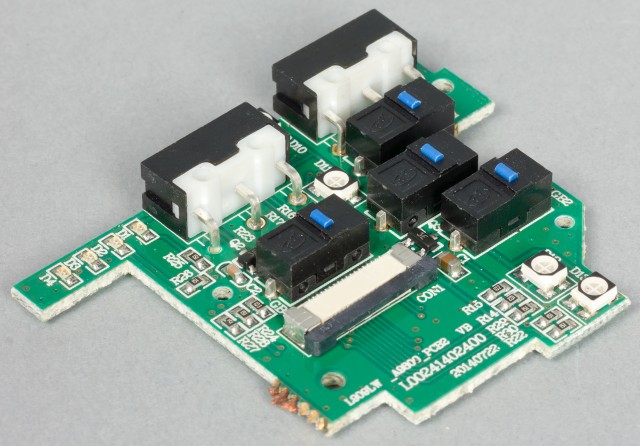 Отметим, что кнопки на «спине» мыши и навигационные клавиши расположены на одной печатной плате, поэтому последние и прижаты к самой верхней кромке ложа для большого пальца. Впрочем, это нисколько не осложняет доступ к ним.