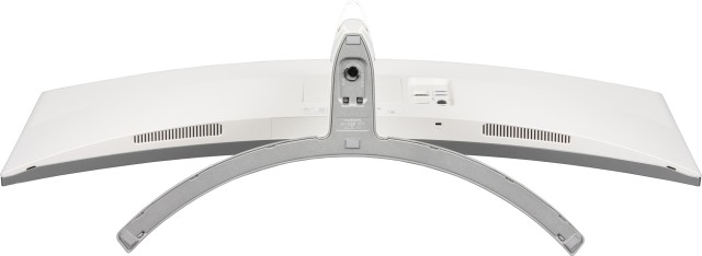 Плоскость экрана выраженно изогнута по цилиндру так, что правый и левый край выдвинуты вперёд. По отражению в экране видно, что изгиб равномерный на большей площади, его радиус составляет порядка 1,5 метров, и только по бокам в вертикальной области около 4-5 см экран скорее плоский, а у самого края даже слегка выпуклый. Фронтальная поверхность экрана выглядит как монолитная чёрная полуматовая поверхность, ограниченная снизу относительно узкой стальной рамкой с матовым чёрным покрытием, а по периметру — узкой окантовкой из пластика с серебристым покрытием.