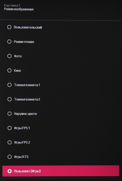 Отдельно вынесены игровые настройки — управление разгоном матрицы, включение/выключение AMD FreeSync и регулировка уровня чёрного.