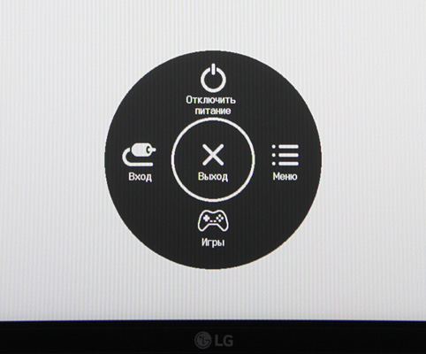 Длительное нажатие всегда выключает монитор. Из стартового меню можно выйти, перейти к выбору входа, к началу основного меню, в игровое меню или выключить монитор. Далее при навигации по меню в нижней его части выводятся подсказка по текущим функциям джойстика.