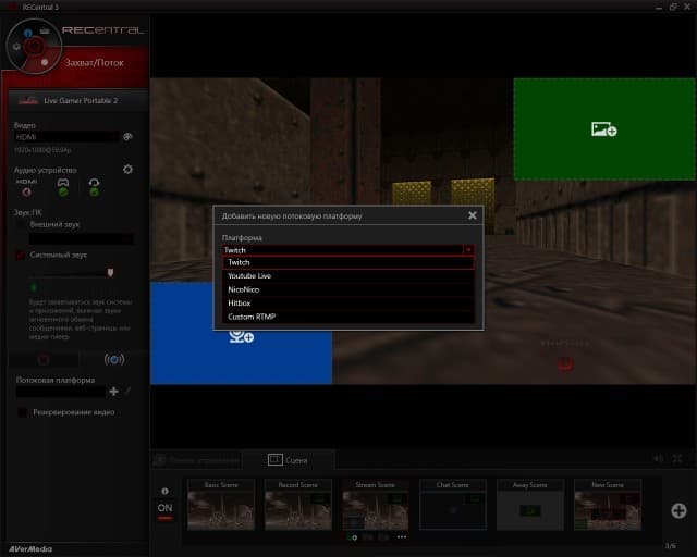 Для работы со стриминговыми сервисами вам потребуется сначала настроить аккаунты. В текущей версии RECentral присутствуют Twitch, Youtube Live, NicoNico, Hitbox и поддержка трансляции по протоколу RTMP.