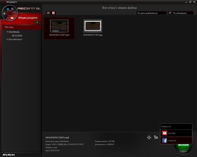 Режим медиаплеера имеет базовый набор возможностей и позволяет организовать ваши записи по папкам, удалить или переименовать файлы, а также опубликовать их на Facebook или в YouTube.