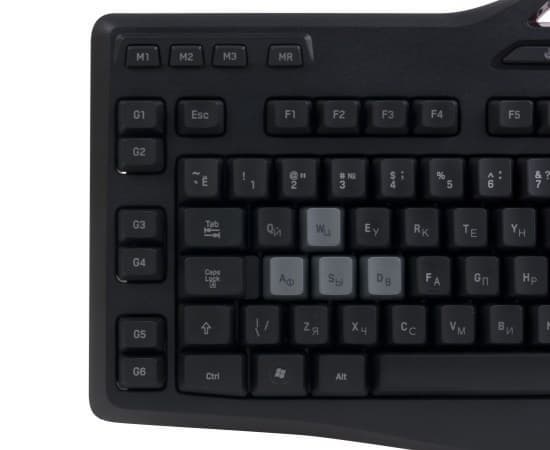 Клавиши Logitech G105 утоплены в корпус не более чем это необходимо для мембранной клавиатуры, коей манипулятор по своей сути и является.